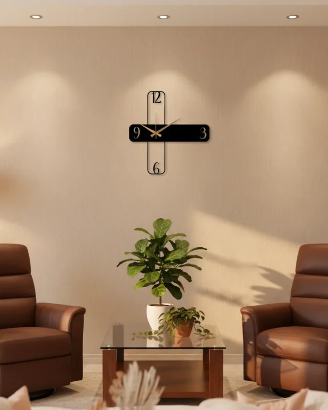 Modern CrossFrame Acrylic Wall Clock – Black & Gold Accent Design