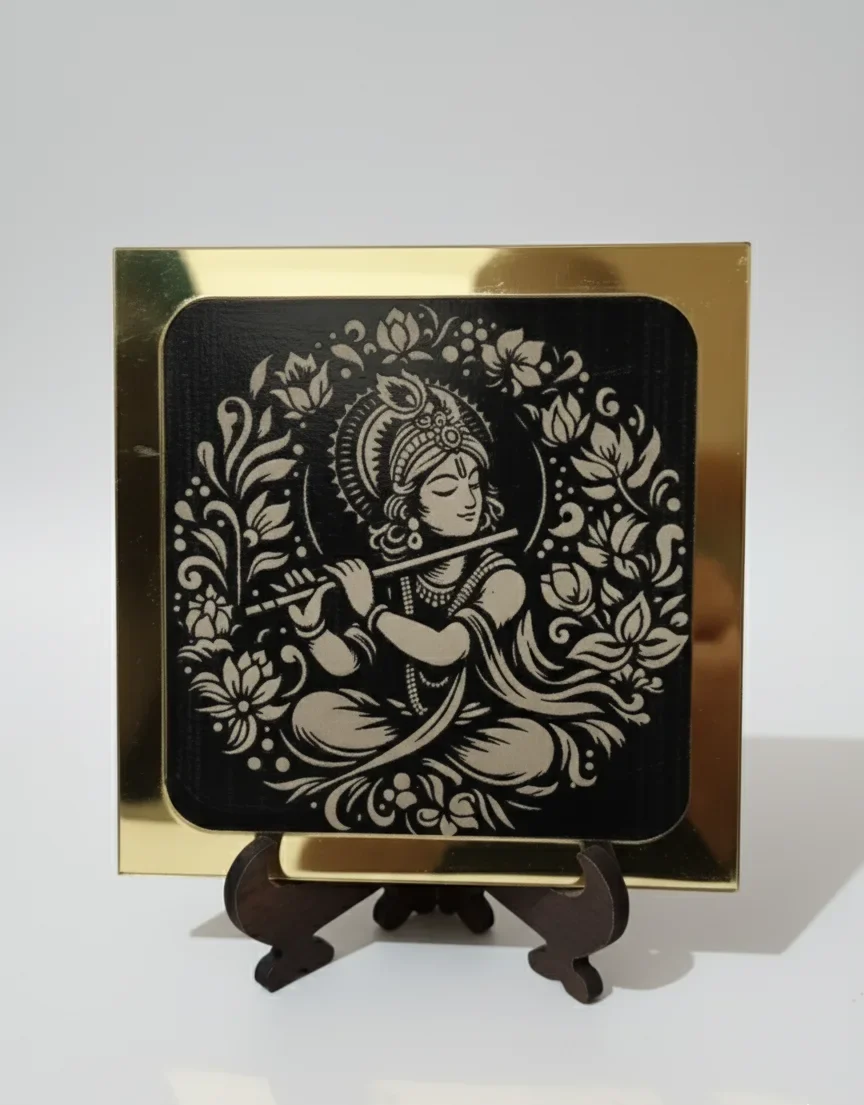 Divine Wooden Art – Lord Krishna Playing Flute (4×4″)