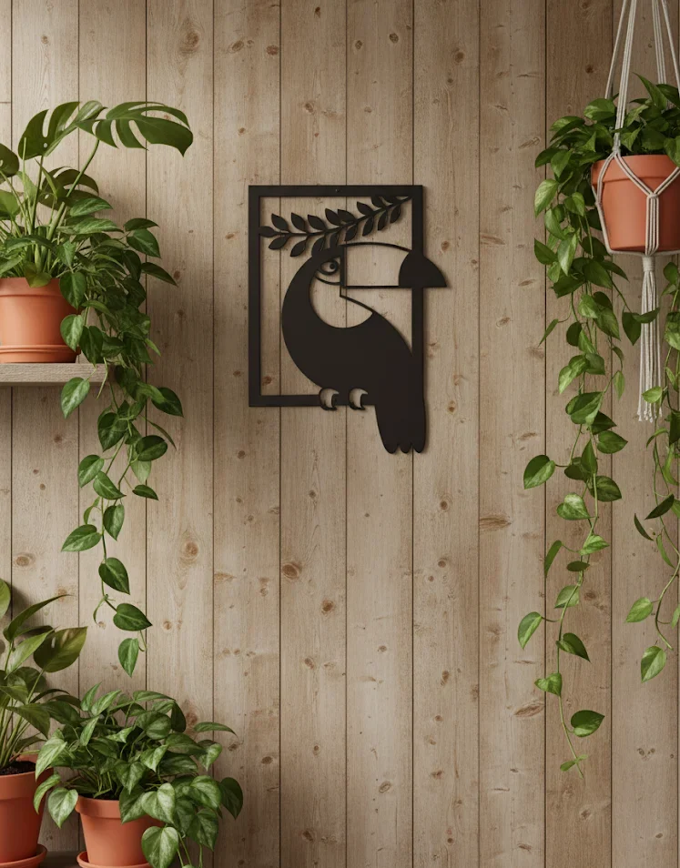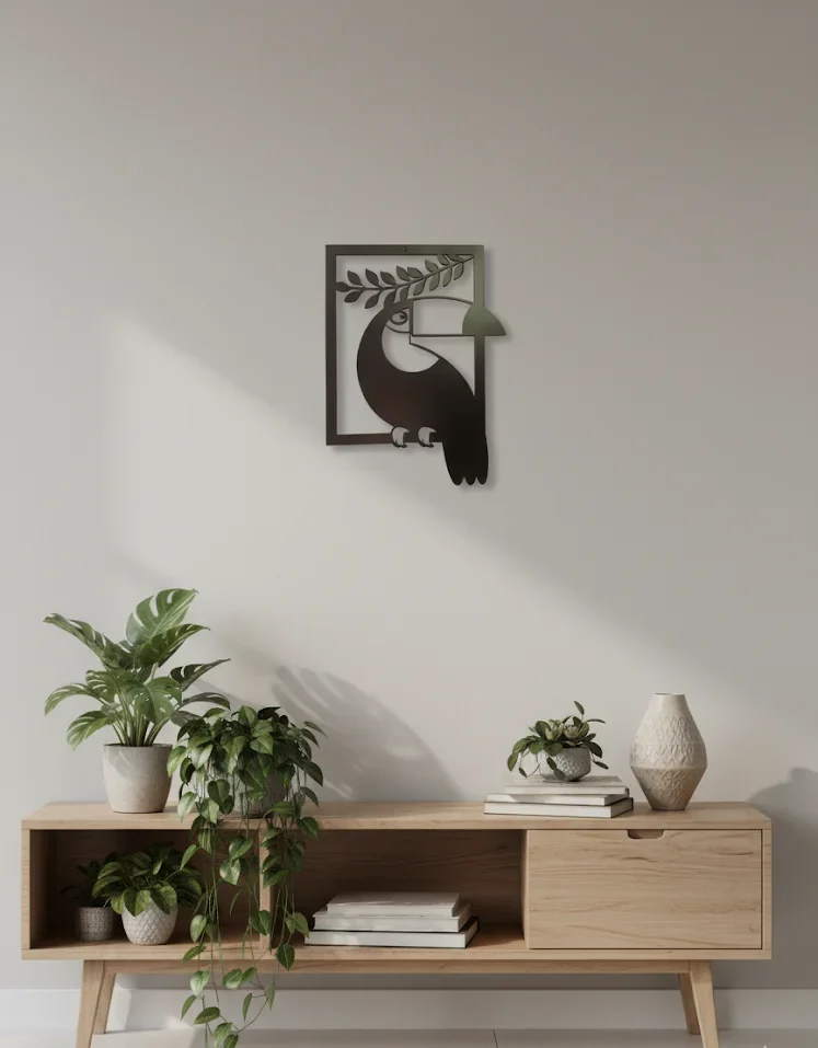 The minimalist toucan design, framed with a leafy accent, adds a touch of tropical charm while maintaining a clean, contemporary look. Whether you want to refresh your living room, bedroom, hallway, or office, this versatile wall décor is a statement piece that blends with both modern and rustic interiors.